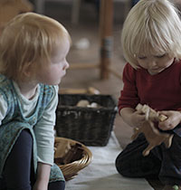 There is a time to share food - an organic snack of fruit, vegetables, rice cakes, water and herbal tea - followed by songs which reflect the seasons, with a rhythm reassuring to the young child. The morning draws to a close with time working and playing in our garden, finishing with our Goodbye Song - both an affirmation of our time together and a reminder that we will meet again soon.